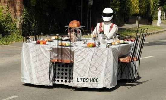 Meja ini memiliki enam kursi, pengaturan meja yang elegan dan boneka Top Gear's The Stig. Kendaraan yang menakjubkan ini memiliki dua teko perak untuk pembuangan uap, lampu rem terbungkus serbet. Kendaraan ini legal untuk dibawa kejalan. Mempunyai tempat duduk kemudi di tengah meja, Fastfood telah mencapai top speed 103 mph.