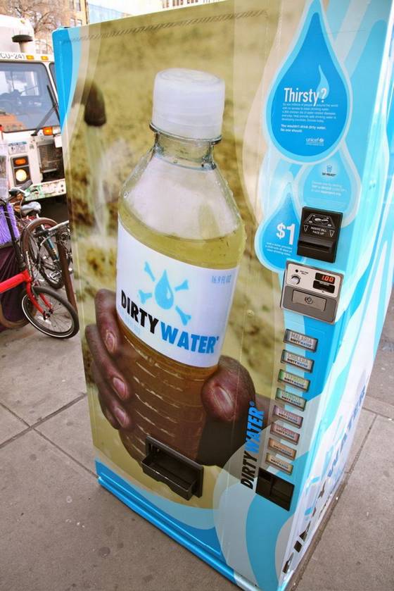 Silahkan ente lihat pada kampanye UNICEF (badan PBB yang khusus menangani masalah anak-anak) ini. sangatlah kreatif dan humoris yang bertujuan untuk menyediakan air bersih untuk anak-anak di seluruh dunia. Anda bisa memilih antara malaria, kolera, tipus, dll pada mesin penjual otomatis ini. Dan yang terpenting agar meningkatkan kesadaran orang-orang tentang masalah yang orang lain hadapi. Casanova, sebuah unit iklan Hispanik Kelompok Interpublic New York berbasis Cos, telah menyumbang dan bekerja pada kampanye untuk pasar Hispanik di New York dan Miami. "Kami sudah menyumbang beberapa juta dolar di media dan produksi," kata Ingrid OtreoSmart, Casanova chief executive.