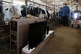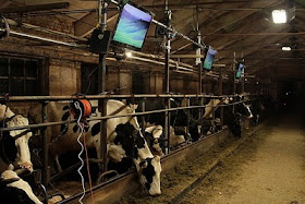 Berikut ini gambar kandang sapi paling elit di dunia yang dilengkapi dengan layar LCD TV :