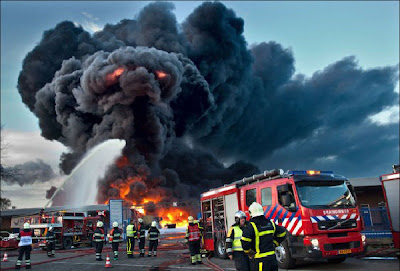 Sebuah Penyerangan secara besar-besaran dari pasukan meraka yang turun melalui langit hahha. Ini sebenarnya gambaran kebakaran di sebuah pabrik kimia di Belanda. Butuh 150 petugas pemadam kebakaran untuk memadamkan api, dan akhirnya semua gedung terbakar sepenuhnya ke tanah, tidak ada orang yang luka-luka meskipun kebakaran itu menimbulkan asap beracun.